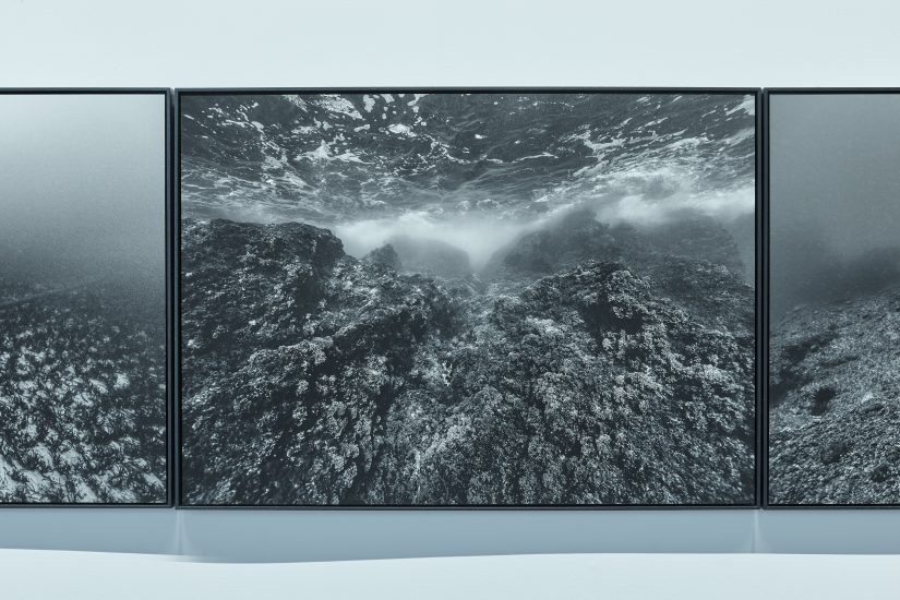 Je ne travaille qu’en lumière naturelle et au grand angle. Je ne transforme pas les images, même si je travaille les contrastes et la lumière. En fonction de la profondeur, je vais avoir des couleurs tirant vers le monochrome avec une dominante verte ou bleue, qui vont tasser la profondeur de champs. Le noir et blanc renvoie aussi à l’histoire de la photographie. À une construction de la photographie de paysage. Aux premières images des paysages terrestres. Et ce travail entre ainsi en résonance avec l’histoire de l’art et la représentation de ce qui se passe sous l’eau, qui ne s’est pas jouée de la même façon. Je viens interroger aussi les représentations que l’on se fait de l’océan.