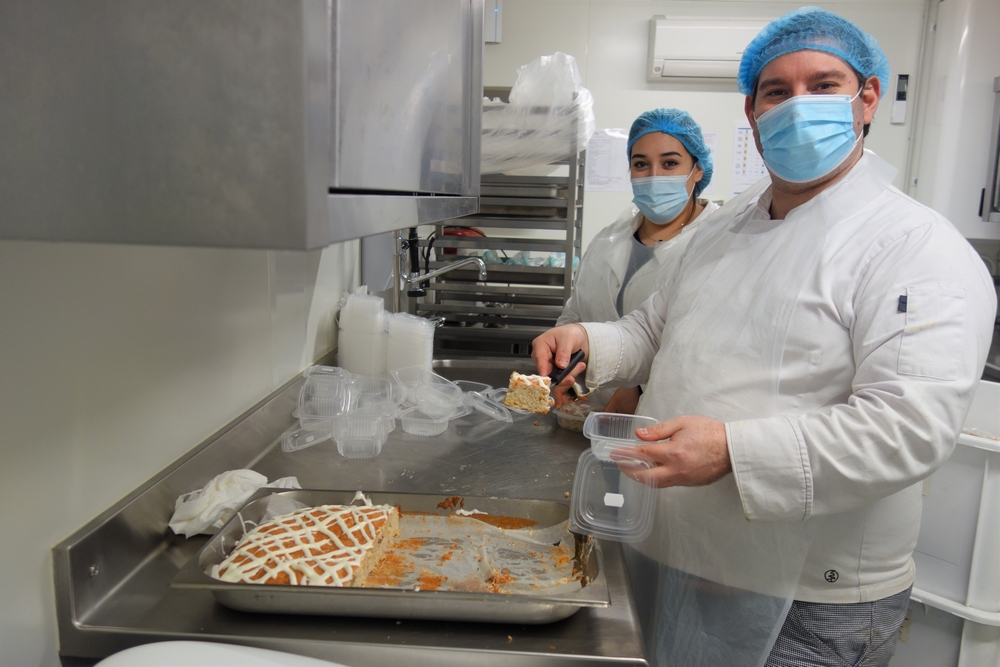 Conditionnement du dessert du jour : un carrot cake maison © AP