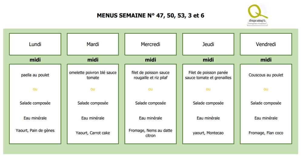 La carte varie chaque jour pendant trois semaines avant de revenir au début. Et tous les trois mois, l’ensemble est revu pour intégrer les fruits et légumes de saison. Les aliments n’ayant pas trouvé leur public – à l’instar des lentilles ou des flageolets – ont été supprimés. Le but étant d’éviter tout gaspillage. Dans cette optique, les plats non réclamés sont donnés en fin de journée aux Restos du Cœur ou au Samu Social.