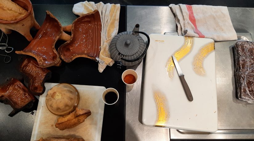 Une fois dans la place, nos sens s’affolent. Des odeurs de rhubarbe, de poulet, de gâteaux qui cuisent dans le four… Des bruits d’ustensiles de cuisine, des éclats de voix. Également des couleurs ; celles des livres de cuisine présents en nombre, des bouquets de fleurs. Nous sommes chez Épices, une école de cuisine un peu particulière.