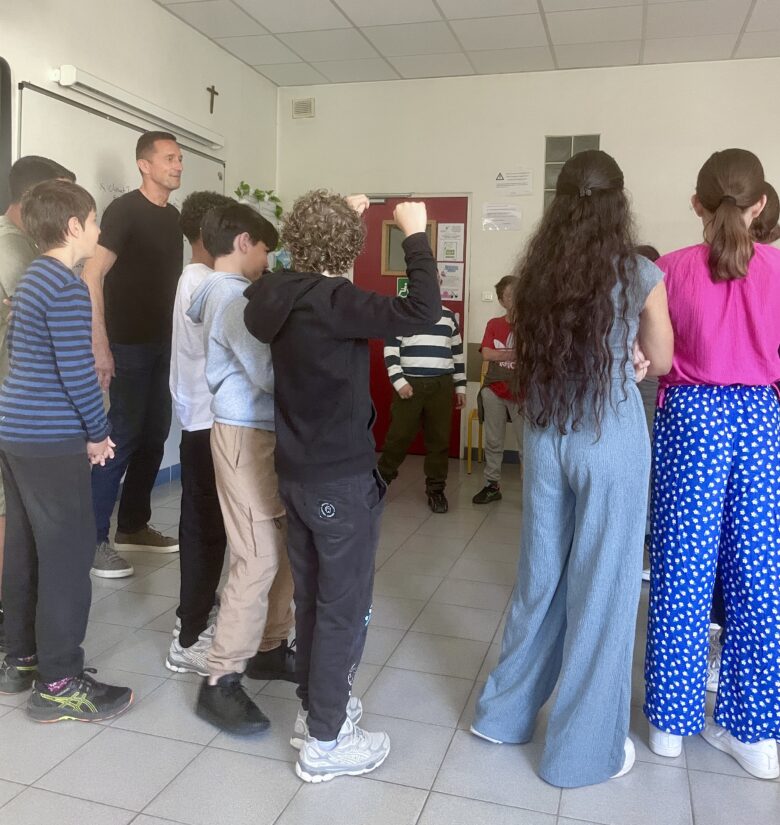 Les séances sont ponctuées d’exercices ludiques. Ce matin-là, Olivier Plancquaert propose à son groupe le jeu des ‘’ou bien’’. À tour de rôle, les élèves positionnés en cercle doivent demander à leur voisin de choisir entre deux propositions. « Tu préfères t’habiller en blanc une semaine ou en noir ? », « Si tu avais des super pouvoirs, tu préférerais porter des objets lourds ou te téléporter ? », « Barça ou l’OM ? », « Camille ou tes potes ? ». À chaque fois, il est demandé aux élèves de bien écouter la question et de motiver leur choix. Et, bien sûr, à ceux qui la posent, de respecter la réponse de leur interlocuteur. L’animateur note une évolution depuis le premier exercice où les élèves, debout, devaient dire leur prénom. « Ça ricanait », rapporte ce directeur commercial à la retraite.