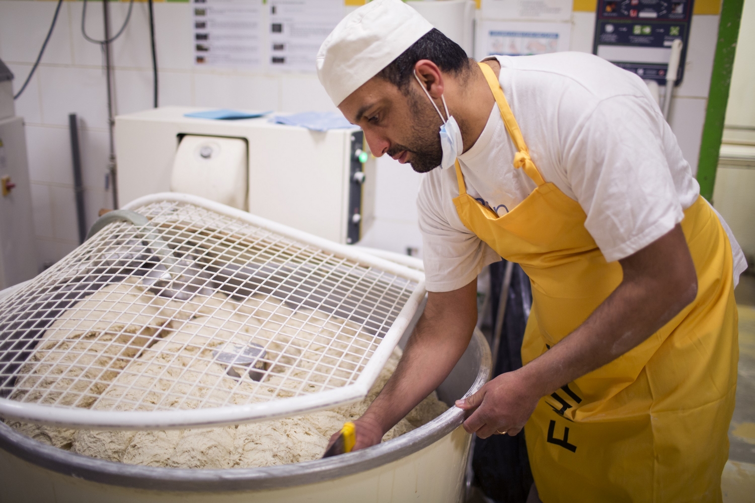 « On fournit en pain des établissements de restauration collective – cantines scolaires, d’entreprises, de centres médico-sociaux ou de structures caritatives. Les livraisons doivent donc intervenir dès le matin, pour assurer les petits-déjeuners et déjeuners », explique Benjamin Borel. L’effervescence, c’est donc la nuit qu’elle éclate. Quand les petites mains confectionnent la pâte, la façonnent, la font dorer dans des fours taille XXL. Même trois heures après leur arrêt, de la chaleur s’en dégage encore. Et les derniers effluves font saliver les papilles.