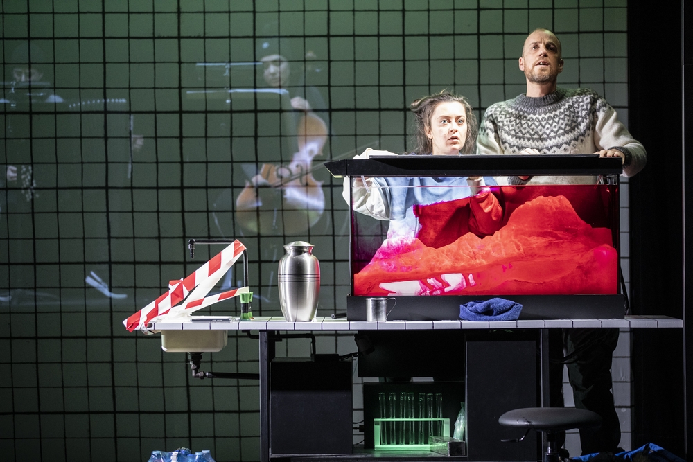 Cette histoire est celle de Sofia, une ingénieure hydraulique qui doit embarquer pour une mission d’études sur un fleuve. Son travail est subitement suspendu quand des algues rouges se déversent depuis le glacier en amont du cours d’eau, empêchant notamment toute navigation. Un phénomène bien réel – quoiqu’un peu exagéré ici – puisque les glaciers alpins prennent bel et bien une couleur rouge ou orangée au printemps en raison de la pullulation d’une algue microscopique (bonus). « Cet opéra traite à la fois d’un sujet d’actualité, le dérèglement climatique, et d’une histoire de famille », résume Delphine Marty. Car, au même moment, le frère de Sophia, Matteo, lui annonce que le corps de leur père, alpiniste disparu vingt ans plus tôt, a été rendu par le glacier en train de fondre. Le retour d’un fantôme du passé qui déboussole la jeune femme et tend les relations de la fratrie.