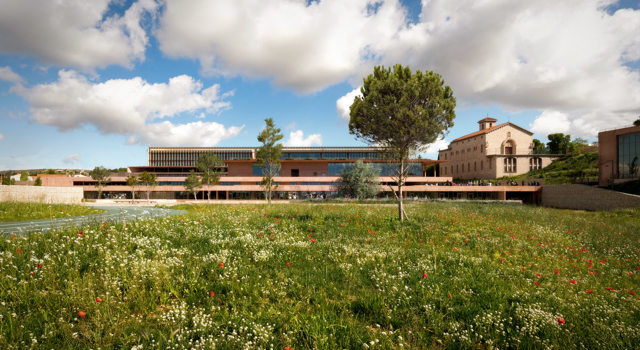 Concernant l’eau, l’exemple du lycée Simone Veil, dans le quartier marseillais de Saint-Mitre, est éloquent. Le terrain mis à disposition se trouve dans un quartier agricole, en contrebas du massif de l’Étoile dont les eaux qui dévalent la colline peuvent potentiellement menacer les quartiers traversés. La réflexion a ainsi porté sur le contrôle des pluies centennales (dont la probabilité de survenue est de 1/100- Ndlr) susceptibles d’inonder ce versant. Donc sur un moyen d’absorber cette eau de manière naturelle, de créer une sorte de tampon intermédiaire. « Nous avons proposé d’utiliser, cette fois encore, juste la moitié du terrain pour y compacter les bâtiments. Ces derniers sont encastrés dans le sol pour emmagasiner l’énergie et la chaleur issues de l’inertie de la terre. Et se déploient sur des restanques pour ralentir le circuit de l’eau, sans raviner. »