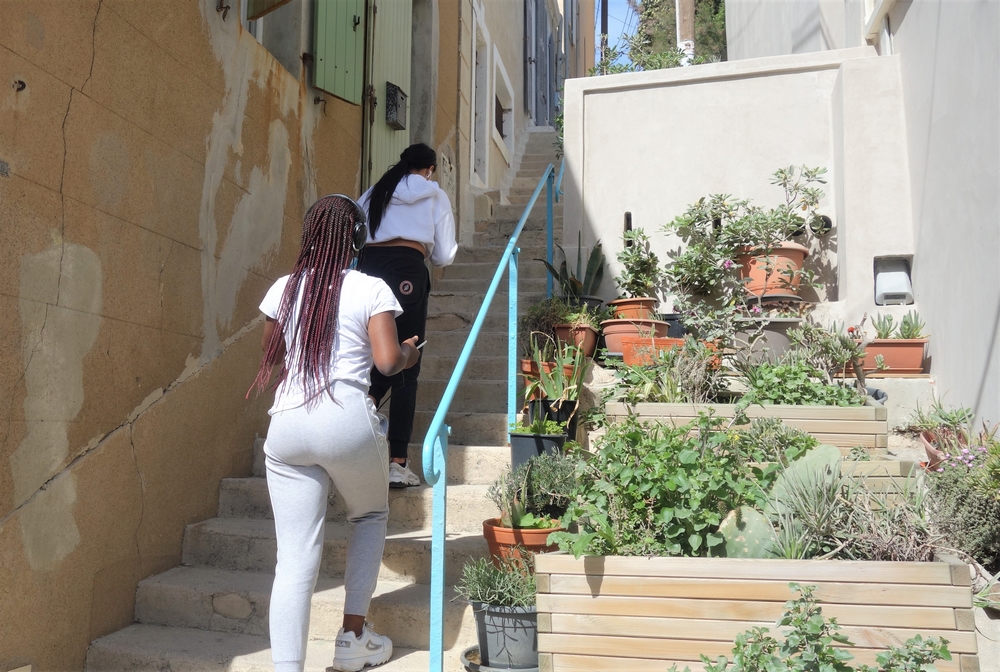 Après une heure de déambulation entre les anses de Maldormé et Malmousque, l’histoire s’achève sous la Porte d’Orient, au-dessus du Vallon des Auffes. Les jeunes ont râlé – « C’est long », « Il fait chaud » – mais au moment du débrief, les commentaires positifs dominent. « C’était cool de sortir, ça fait du bien », lâche Yasmine, résumant l’avis général. Florian Zappa profite de l’instant pour amorcer le début d’une réflexion. « Pourquoi Adama s’est fait agresser ? ». « Parce qu’il est noir », répond Marie-Line. Et Jade d’ajouter : « C’est des racistes ». Des sujets sur lesquels il reviendra plus en profondeur la semaine suivante en classe.