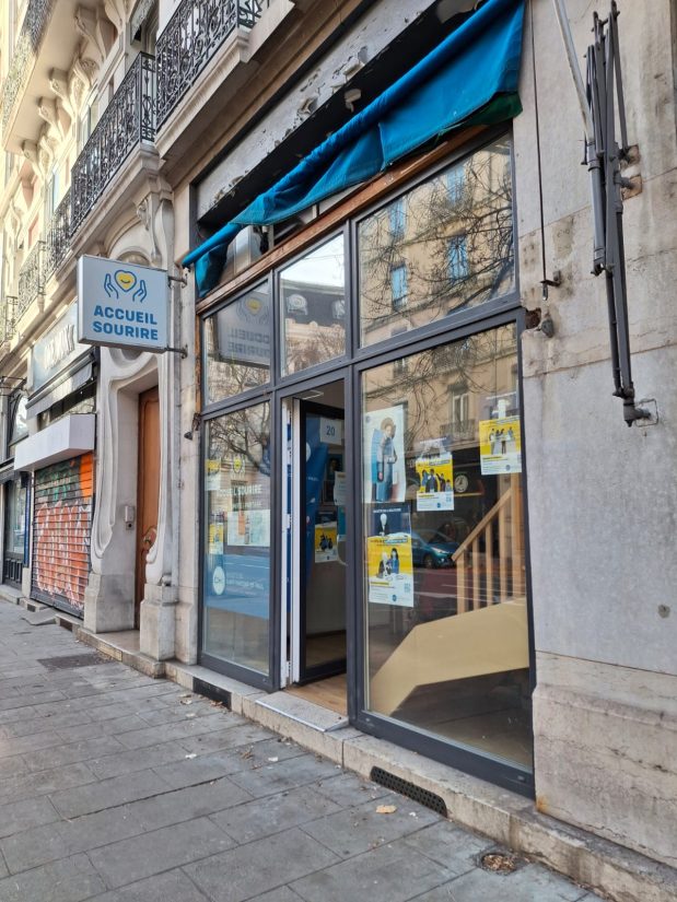 « On est ouvert à tout le monde, sans condition ni jugement », affirme d’emblée Jean-Paul Lamorisse, bénévole, lorsqu’on pénètre dans ce local du centre-ville grenoblois. Porte ouverte et kakémonos de présentation déjà en place, cet après-midi, l’Accueil Sourire sera fréquenté par une vingtaine de personnes, venues prendre un café, discuter ou simplement profiter de l’espace chauffé et confortable.