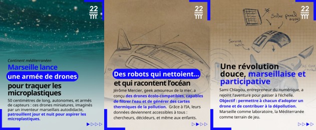 Pour coordonner cette flotte, Jérôme Mercier a conçu un système d’intelligence artificielle chargé d’analyser les données récoltées. « L’IA digère un volume monstrueux d’informations.  Elle détermine ainsi quelles zones prioriser, évite les conditions météo défavorables, et réoriente les robots. » Mais l’intérêt ne s’arrête pas à la logistique. L’IA a aussi une vocation pédagogique : traduire des données techniques en contenus lisibles pour le grand public, les décideurs et les chercheurs. « Quand un geek parle, souvent on ne comprend rien, sourit l’inventeur. L’IA permettra de rendre ce savoir accessible, de faire prendre conscience que même une eau limpide peut être saturée de microplastiques. »