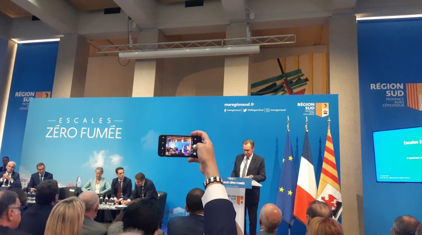 Le dossier de presse fourni par la Région en ce jeudi 5 septembre est un petit livret très didactique. Grâce aux pictogrammes et quelques chiffres clés, n’importe quel néophyte peut comprendre les enjeux de ce plan à 5 ans. Politiquement, Renaud Muselier a réussi un beau coup. Sur l’estrade à ses côtés, les maires de Nice et Toulon (LR comme lui), mais également le président du Conseil exécutif de Corse, l’indépendantiste Gilles Simeoni, et surtout deux ministres LRM, Elisabeth Borne en charge de la transition écologique et solidaire et Jean-Baptiste Djebbari, le tout nouveau secrétaire d’État aux transports dont c’est la première sortie en public. Dans la salle, comble, se presse tout ce que Marseille compte comme candidats potentiels à la mairie mais aussi d’armateurs et représentants de la filière maritime. C’est dire si le débat soulevé depuis des années par les ONG sur la pollution extrême générée par les navires est devenu un sujet sensible. En début d’année pourtant, personne ne semblait s’en préoccuper.