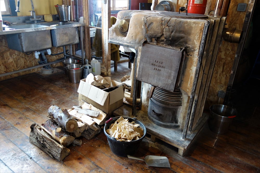 L’atelier (à gauche) a été conçu à partir de deux containers maritimes. À l’intérieur le poêle à bois (à droite) est l’une des sources d’alimentation du séchoir à pâtes © AP