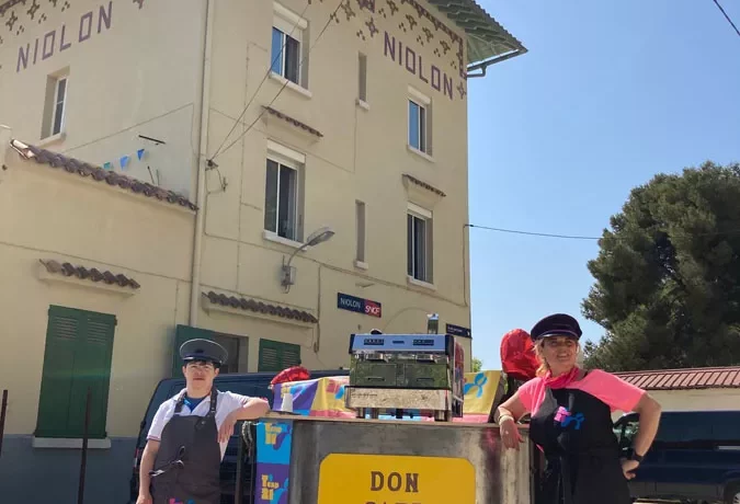 Des touristes s’approchent de la buvette aménagée dans le jardin de la gare de Niolon. Lucie, large sourire et yeux pétillants, n’attend pas leur commande, elle dégaine : « Est-ce que je peux vous proposer à boire ? » Nullement décontenancé par les traits de ‘’Lulu’’, porteuse de trisomie 21, le groupe passe commande. Et rejoint les nombreux clients venus profiter de la fraîcheur du lieu en attendant le train qui longe les calanques de la Côte Bleue, au nord-ouest de Marseille.