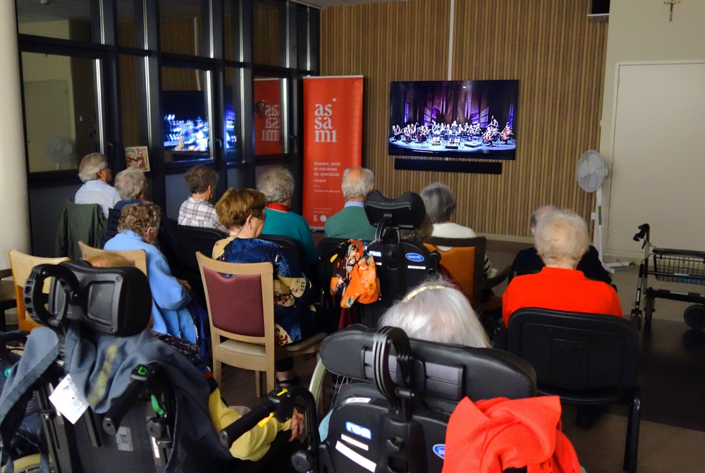 Madame Dumon a toujours eu l’habitude d’aller voir des concerts de musique classique. Un hobby qu’elle avait malheureusement abandonné avec la perte de mobilité liée à son âge grandissant. Mais avec lequel elle a pu récemment renouer, certes de façon quelque peu différente : au sein de son Ehpad. Depuis deux ans en effet, des retransmissions en direct de spectacles sont proposées à la petite centaine de résidents de l’Hospitalité Saint-Thomas de Villeneuve, au cœur d’Aix-en-Provence (Bouches-du-Rhône).