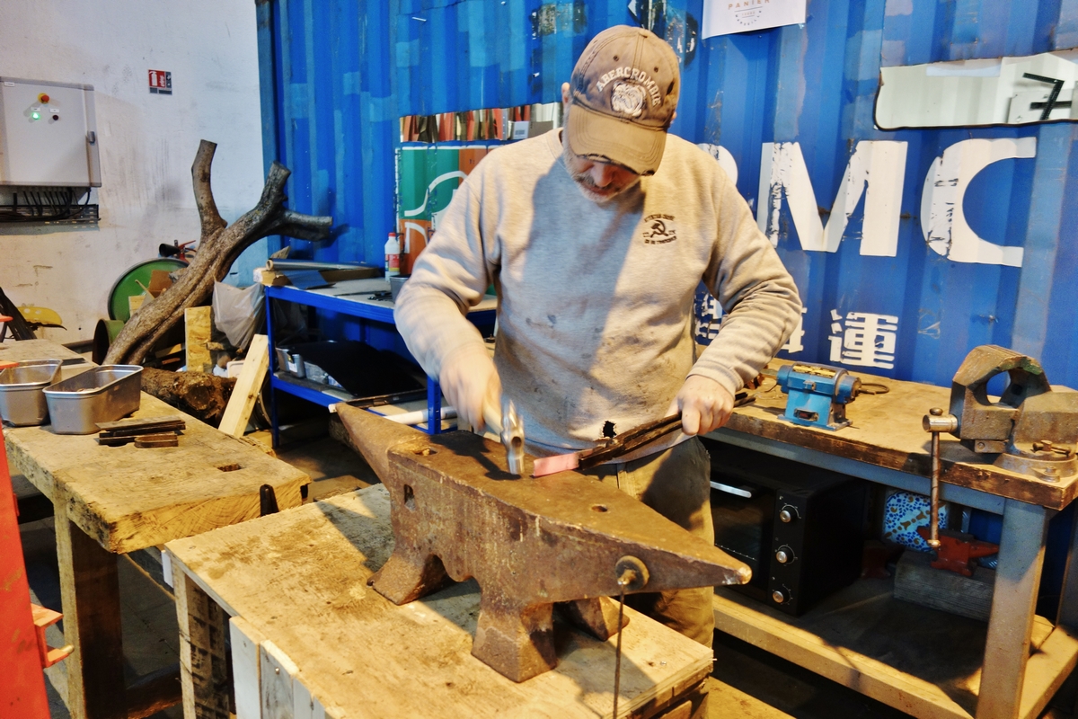 Dans cette lignée de travail collaboratif, la Coutellerie du Panier, qui loue un conteneur depuis décembre en complément de sa boutique pignon sur rue dans le plus vieux quartier de Marseille, fait fabriquer ses supports à couteaux par l’un de ses voisins de palier. Et un autre Maker lui a réalisé des chariots en métal sur-mesure où poser ses propres machines. « On a un vrai espace dédié au travail maintenant. David (ndlr : le directeur de la manufacture) nous a même aménagé le conteneur d’une façon particulière pour correspondre à nos besoins », se félicite Jean-Pierre Ambrosino. Le coutelier, qui n’a que des éloges à faire sur le lieu, avoue tout de même une inquiétude sur l’avenir du site, voué à la délocalisation dans un peu moins de quatre ans.