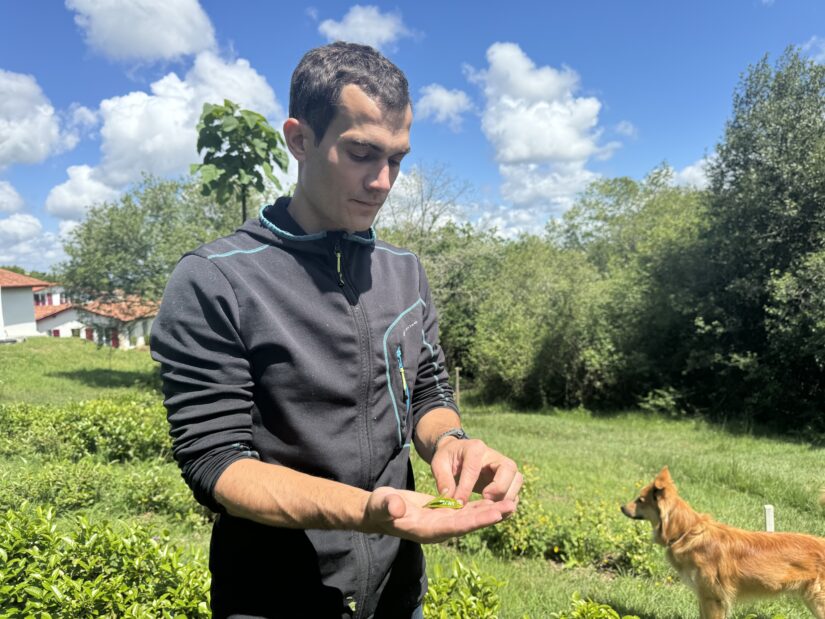 « On est cinq producteurs dans la région, tout le monde s’est lancé en même temps », raconte chaleureusement le producteur de son accent basque, flanqué de son chien Oiz. La région a en effet un avantage pour la culture du thé : le climat est humide et tempéré, comme en Bretagne – « l’autre grand pôle avec le Pays basque », précise celui qui a découvert le théier en 2019 lors d’un voyage aux Açores (bonus).