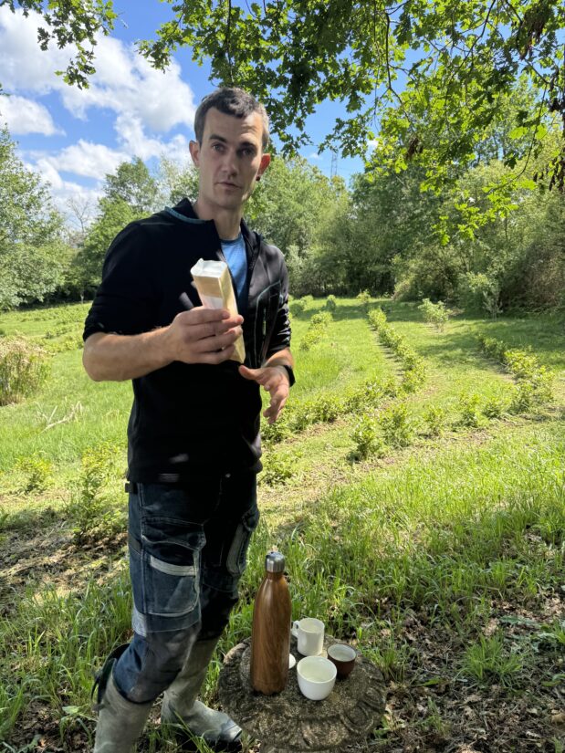 Au bout de trois ans d’expérimentation, Mikel Esclamadon est satisfait. Ses théiers « poussent bien » et donnent du « bon thé ». Deux marqueurs importants. En effet, « ça peut bien pousser, mais donner du mauvais thé ». Pour parvenir à ce résultat, il lui a fallu cependant procéder à des ajustements, particulièrement après la sécheresse de 2022, qui a vidé ses citernes d’eau de pluie. « Une catastrophe, j’ai perdu 1000 plants, que des boutures, se désole le paysan. Particulièrement sur la dernière parcelle qui est bombée ». Il a depuis mixé l’origine de ses plants avec ses propres semis, plus résistants. Et planté, au milieu, des arbres à croissance rapide, « si un jour la sécheresse revient », ponctue le Basque qui observe désormais des hivers pluvieux et des étés secs.