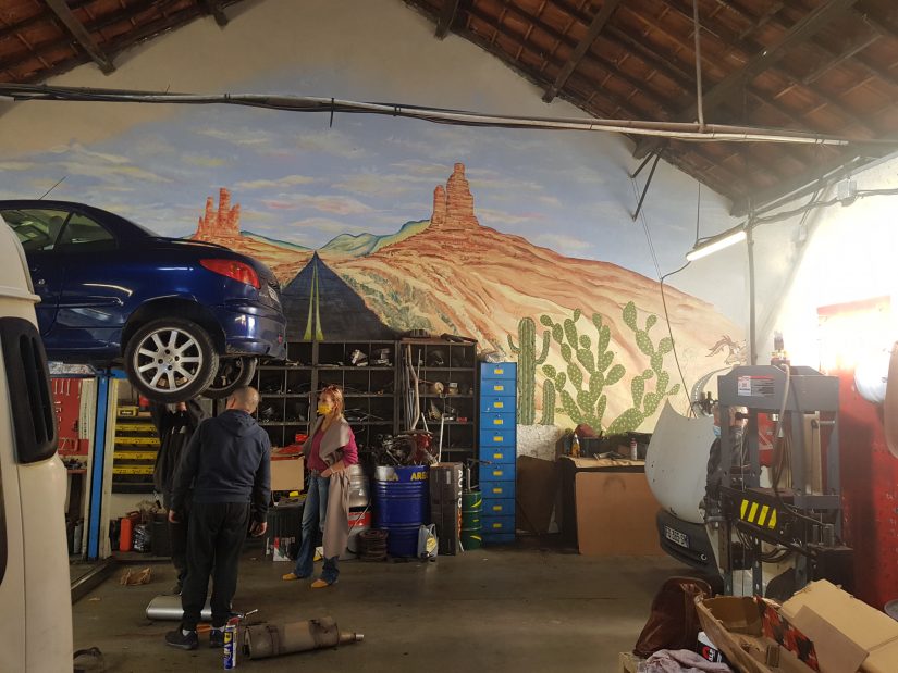 De quoi permettre au garage de s’appuyer sur trois mécaniciens salariés. Pour le reste, ce sont les vingt et quelques adhérents « actifs » qui permettent à l’association de tourner. Qu’il s’agisse de mettre les mains dans le cambouis, gérer l’accueil ou habiller une façade du garage d’un dessin géant de Bibip et Coyotte.