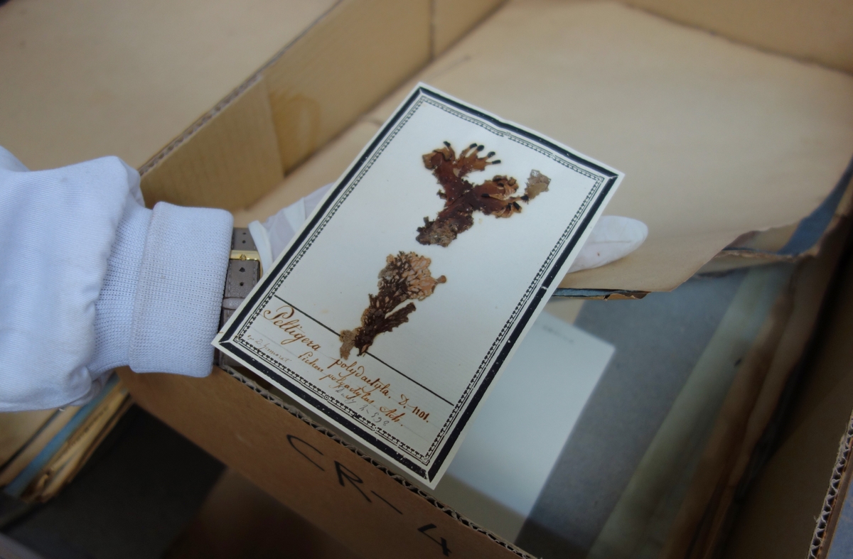 Cette ancienne pharmacienne devenue botaniste s’est lancée dans un véritable travail de fourmi : référencer tous les lichens de la collection. « J’ouvre les cartons, j’étudie les informations inscrites sur les étiquettes de récolte, qui concernent un à plusieurs spécimens, et j’en fais un inventaire. Contrairement aux apparences, c’est très fastidieux. Je passe des fois une matinée entière sur une seule étiquette », sourit-elle. Car certaines, anciennes, se sont abîmées au fil du temps. Ou les informations notées dessus sont devenues obsolètes, comme le nom des lieux de collecte, ce qui l’oblige à des recherches.