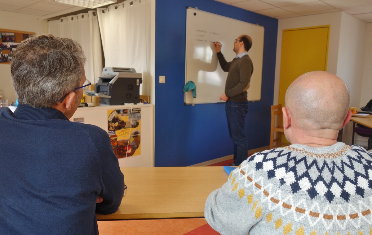 Ce jour-là, c’est atelier communication. « L’objectif de cette session est que chaque participant prenne conscience de son image afin de l’améliorer », explique François Eygun, directeur de Massajobs. Différents exercices s’enchaînent. Le premier consiste à simplement se présenter aux autres et dire la première chose qui vient à l’esprit. « Le but n’est pas de se juger mais de se dire ce qui peut être amélioré, car tout le monde est là pour progresser », précise Benoît Chanson. La timidité d’Éric refait surface. « On va laisser les autres passer et tu verras si à la fin si tu veux essayer », le rassure l’animateur.