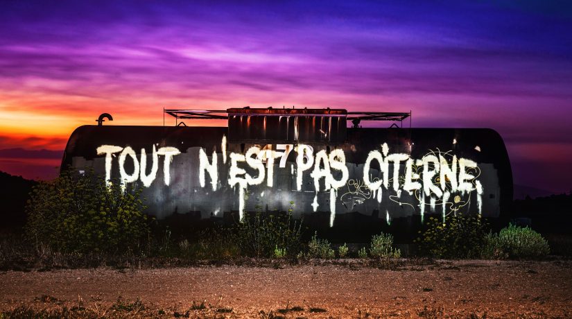 Philippe Echaroux street artiste 2.0 2Je retrouve Philippe Echaroux autour d’un café sur le Cour Estienne d’Orves. Son travail et sa façon de faire me fascinent depuis un moment et je veux en savoir plus sur son parcours. Comment qualifier ce trentenaire pragmatique au visage doux souligné par l’excentricité de percings d’oreille éclatants ? Ecrivain urbain ? Punch liner ? Militant écolo ? Tagueur propre ?… « Tout disparaît quand j’éteins mon projecteur. Réflexe de grimpeur », me répond-il. Dans ses jeunes années, cet artiste marseillais se passionnait pour l’escalade et les sports outdoor. S’il ne pratique plus à haut niveau, il en a gardé les valeurs : l’amour de la nature, le respect des lieux… Alors quand en 2013 il décide de faire sa toile des murs urbains, c’est assez naturellement qu’il prend les photons* comme pinceaux. « Après des études scolaires laborieuses, j’avais démarré sans conviction une formation d’éducateur spécialisé ; la photo m’attirait. J’en ai fait mon plan B », raconte-t-il.