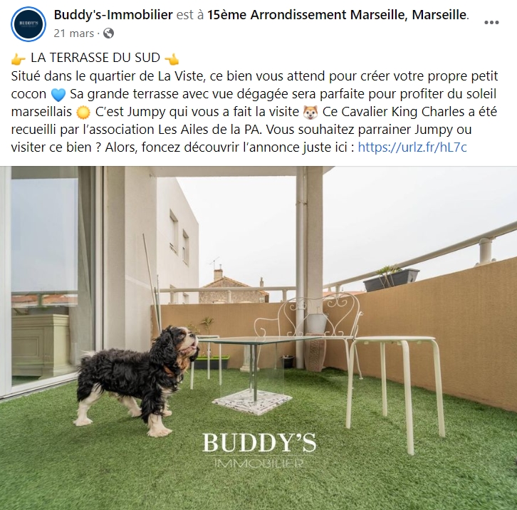 Pour Jean-Mathieu Gallo, ces clichés pris dans un lieu de vie permettent aux potentiels adoptants de mieux se projeter. Les animaux choisis pour figurer sur les photos sont prêts à rejoindre une famille. Ceux qui sont trop abîmés, physiquement ou psychologiquement, sont d’abord soignés avant d’y prétendre. Mais les séquelles sont parfois telles qu’ils ne seront jamais aptes. Comme Jumpy, un Cavalier King Charles présentant de lourdes pathologies. Buddy’s Immobilier l’a tout de même immortalisé pour promouvoir le parrainage d’animaux, à savoir des dons de particuliers à destination d’un animal précis afin de participer à ses frais d’entretien.