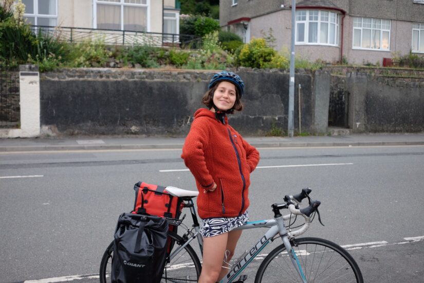 # Son voyage. Son vélo, un Gravel, est un deux roues très polyvalent qu’elle a monté en 2022, qui permet d’aller sur route, sentier et chemin. Elle a effectué sa première écoaventure textile du Luberon à l’Ariège en mai 2024. Sur le porte-bagage du vélo, de grandes sacoches dans lesquelles Vorlette transporte tout ce dont elle a besoin pour vivre – tente, réchaud, nourriture et vêtements – et voyager en totale autonomie. C’est elle qui a cousu Iles accessoires techniques à partir de textiles de récupération.