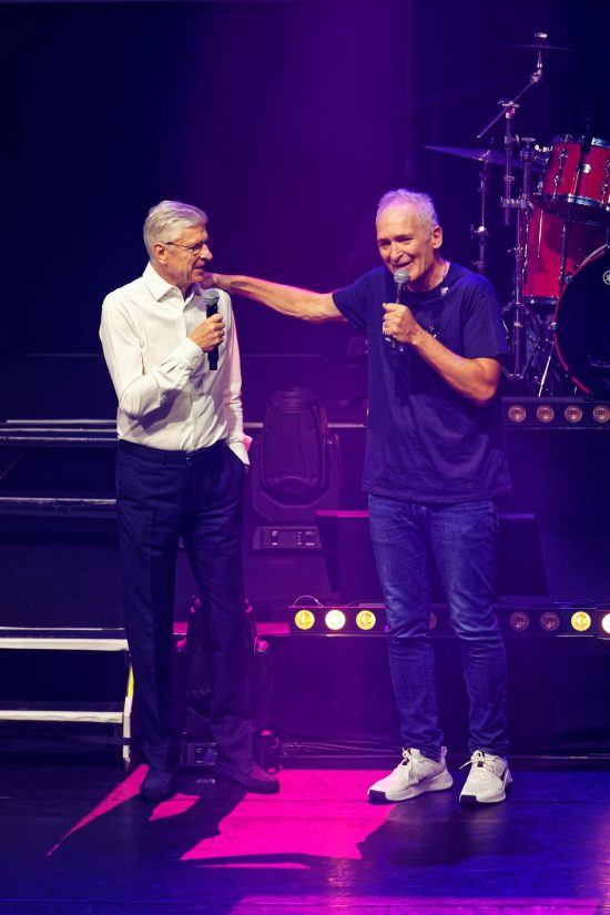 Dans les coulisses, à deux heures du lever de rideau, l’effervescence est palpable. Ninon Bardel, attachée de presse de l’association et chef d’orchestre de la soirée, court d’un musicien à l’autre, tandis que Christian Jeanpierre accueille artistes et mécènes de l’édition 2025. De son côté, comme chaque année, Arsène Wenger, parrain historique, harangue l’équipe. Car le coach mythique est réputé pour sa capacité à motiver les joueurs : « Il faut que vous les fassiez monter au ciel. Un pour tous, tous pour un ! ».