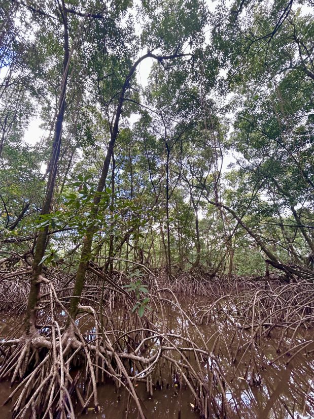 Les mangroves, forêts de palétuviers qui occupent près de 80% du littoral guyanais, ont la particularité d’être mouvantes ©FH