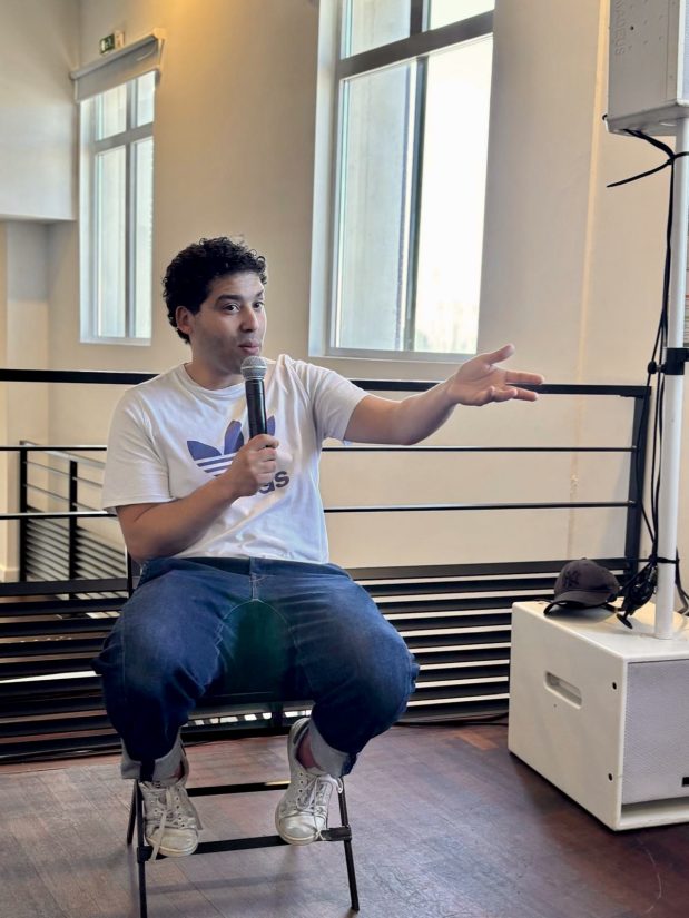 À Marseille, au Théâtre de la Criée, la salle est quasi-pleine ce dimanche d’avril, malgré le long week-end pascal. Après son seul en scène Ma République et moi, Issam Rachyq-Ahrad ne file pas en coulisses. Déjà parce qu’à chaque représentation succède un petit cérémonial du thé – selon la recette de sa maman, qui la transmet lors du spectacle. Tee-shirt, jean, baskets et son lumineux sourire. La discussion s’ouvre, animée par une journaliste de Marcelle. Se prolongera avec le public. Une causerie à l’image du spectacle : directe, incarnée, sans détour.