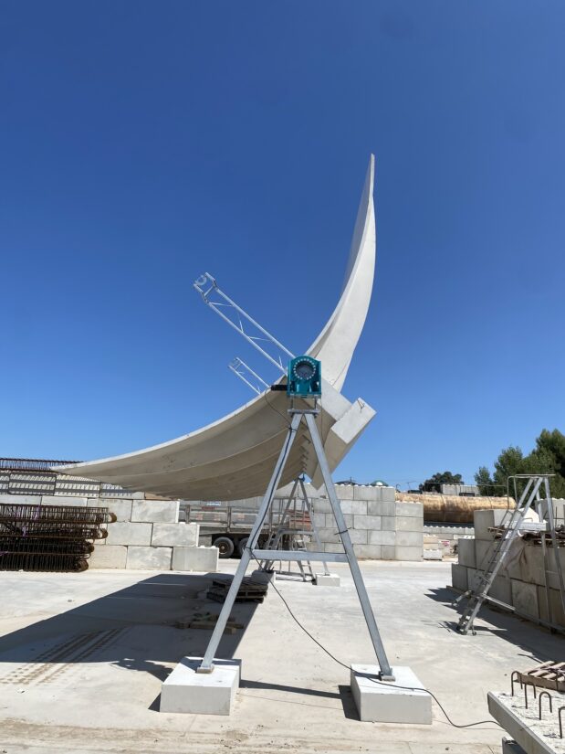 Alto Solution fait ainsi le pari du béton à la place de l’acier. « Nous avons particulièrement innové sur le collecteur », aussi appelé auge parabolique. « Par rapport à l’acier, le béton peut résister à des vents trois fois plus rapides. L’autre avantage de ce matériau est que le poids est réparti sur l’ensemble de la structure, ce qui permet de se passer de fondations au sol ». Le démantèlement est dès lors plus aisé, et l’infrastructure ne contribue pas à l’artificialisation du sol.