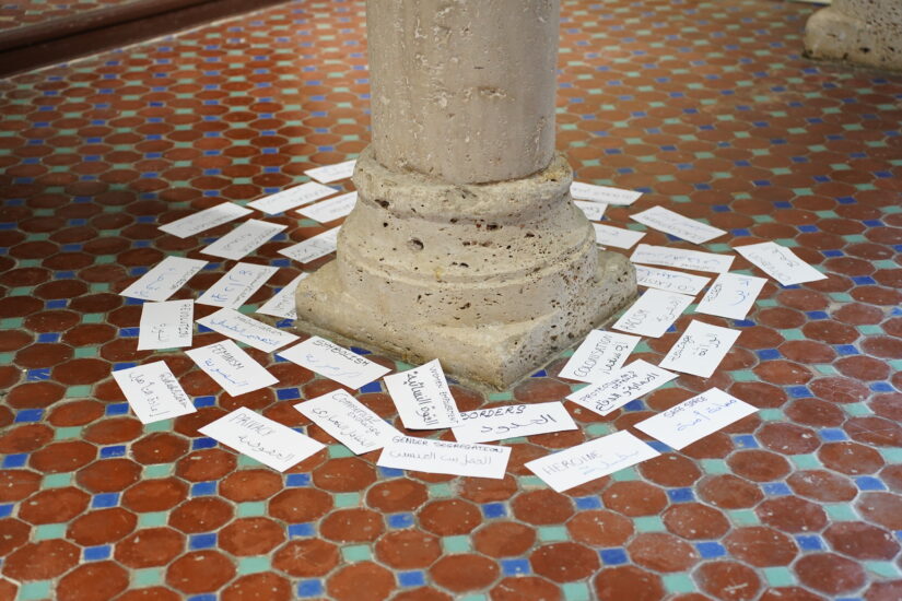 Les petits Marseillais ont découvert par exemple, dans le quartier du Panier, la plaque de la “Petite Naples’’. Elle raconte l’immigration napolitaine dans la cité phocéenne et la rafle du Vieux Port. Les Bastiais ont arpenté le centre, où se trouvent plusieurs traces rappelant l’histoire de la Seconde Guerre mondiale, l’occupation italienne. Mais aussi la libération de la ville, grâce notamment à des contingents marocains. Les Tangérois ont découvert, quant à eux, Fatima Al Fihria, fondatrice de la plus ancienne université du monde encore en activité. Après une première journée centrée sur la découverte, les élèves des trois villes ont interprété les éléments observés par l’écriture collective. Les Tangérois ont fait parler la fontaine Sabilah, la porte Bab al-Assa et même un carreau de zellige bleu blanc et vert – « qui symbolise le ciel, la paix et la nature […] », peut-on lire dans leur texte poétique.