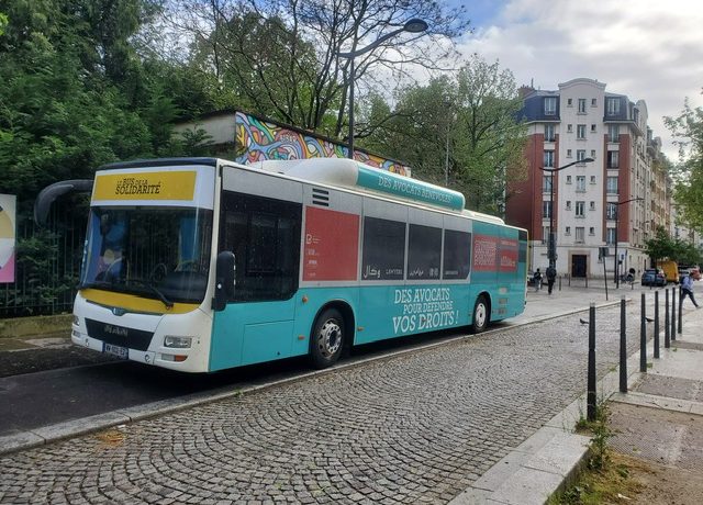 Dans le bus, il y a les permanences généralistes, et puis d’autres plus spécialisées. Typiquement, un mercredi sur deux, le fonds de dotation du Barreau de Paris, partenaire de la Fondation des femmes, propose des permanences à destination de femmes victimes de violences dans le 20ème arrondissement de la capitale, mais aussi pour les personnes en quête d’une information autour du droit d’asile et des étrangers deux fois par semaine. Le fonds de dotation du Barreau de Paris se mobilise en outre aux côtés de l’association Droits d’urgence pour conseiller des personnes démunies, souffrant de troubles psychiques ou psychiatriques.